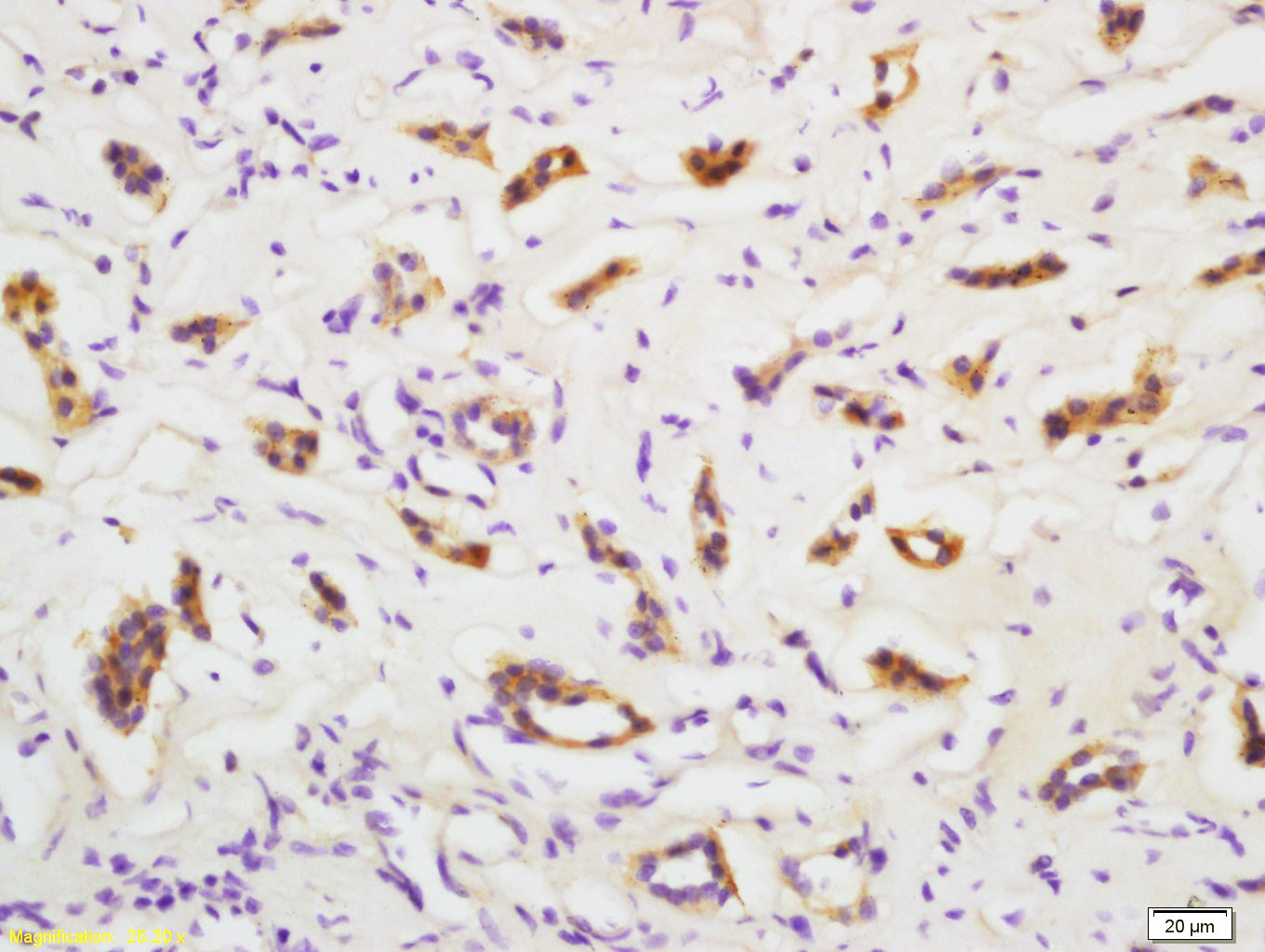 Antigen retrieval: citrate buffer ( 0.01M, pH 6.0 ), Boiling bathing for 15min; Block endogenous peroxidase by 3% Hydrogen peroxide for 30min; Blocking buffer (normal goat serum,C-0005) at 37℃ for 20 min;