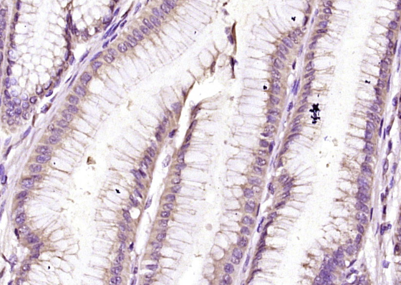 Paraformaldehyde-fixed, paraffin embedded (human gastric carcinoma); Antigen retrieval by boiling in sodium citrate buffer (pH6.0) for 15min; Block endogenous peroxidase by 3% hydrogen peroxide for 20 minutes; Blocking buffer (normal goat serum) at 37°C for 30min; Antibody incubation with (GEF H1) Polyclonal Antibody, Unconjugated (bs-4202R) at 1:400 overnight at 4°C, followed by operating according to SP Kit(Rabbit) (sp-0023) instructionsand DAB staining.