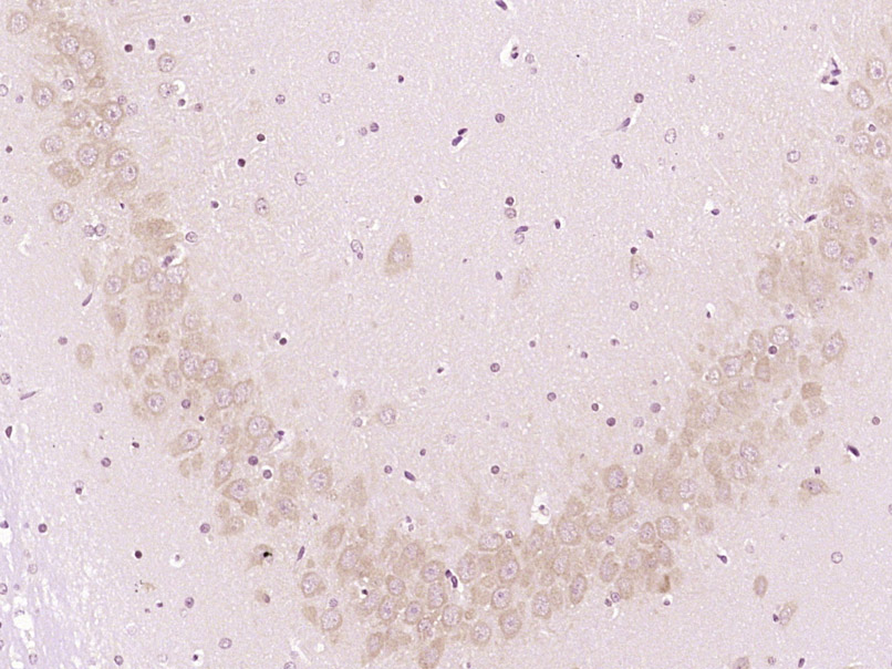Paraformaldehyde-fixed, paraffin embedded (Rat brain); Antigen retrieval by boiling in sodium citrate buffer (pH6.0) for 15min; Block endogenous peroxidase by 3% hydrogen peroxide for 20 minutes; Blocking buffer (normal goat serum) at 37°C for 30min; Antibody incubation with (Protective protein,Cathepsin A) Polyclonal Antibody, Unconjugated (bs-6040R) at 1:400 overnight at 4°C, followed by operating according to SP Kit(Rabbit) (sp-0023) instructionsand DAB staining.