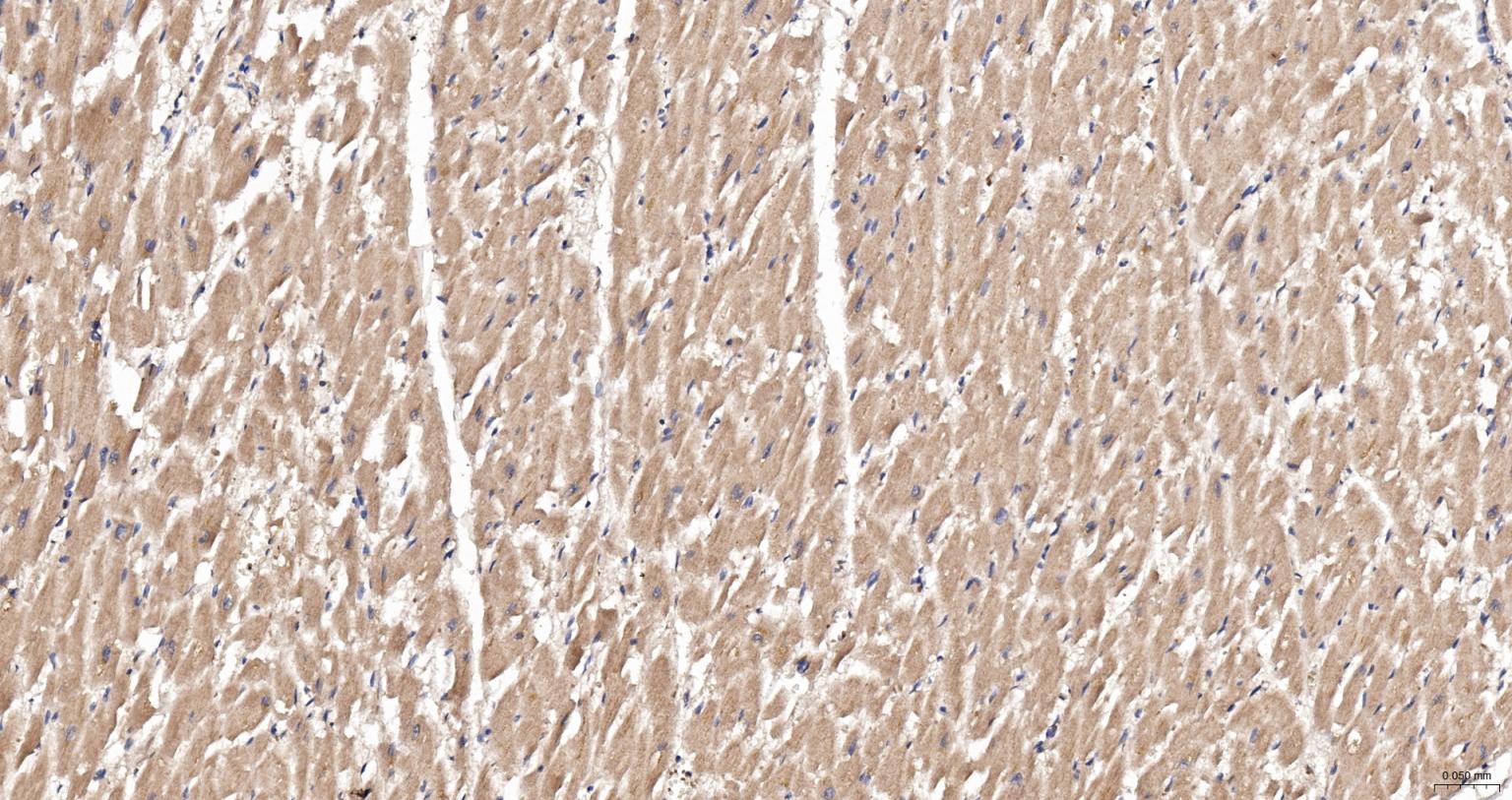 Paraformaldehyde-fixed, paraffin embedded Human Heart; Antigen retrieval by boiling in sodium citrate buffer (pH6.0) for 15 min; The section was incubated with CAMKK2 Polyclonal Antibody, Unconjugated (bs-6253R) at 1:200 overnight at 4°C, followed by conjugation to the bs-0295G-HRP and DAB (C-0010) staining.