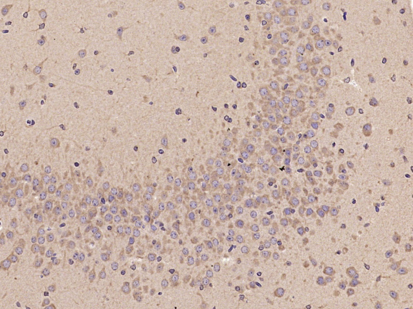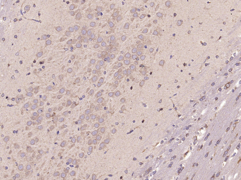 Paraformaldehyde-fixed, paraffin embedded (Mouse brain); Antigen retrieval by microwave in sodium citrate buffer (pH6.0) ; Block endogenous peroxidase by 3% hydrogen peroxide for 30 minutes; Blocking buffer (3% BSA) at RT for 30min; Antibody incubation with (Ribonuclease Inhibitor) Polyclonal Antibody, Unconjugated (bs-7518R) at 1:400 overnight at 4℃, followed by conjugation to the secondary antibody (labeled with HRP)and DAB staining.