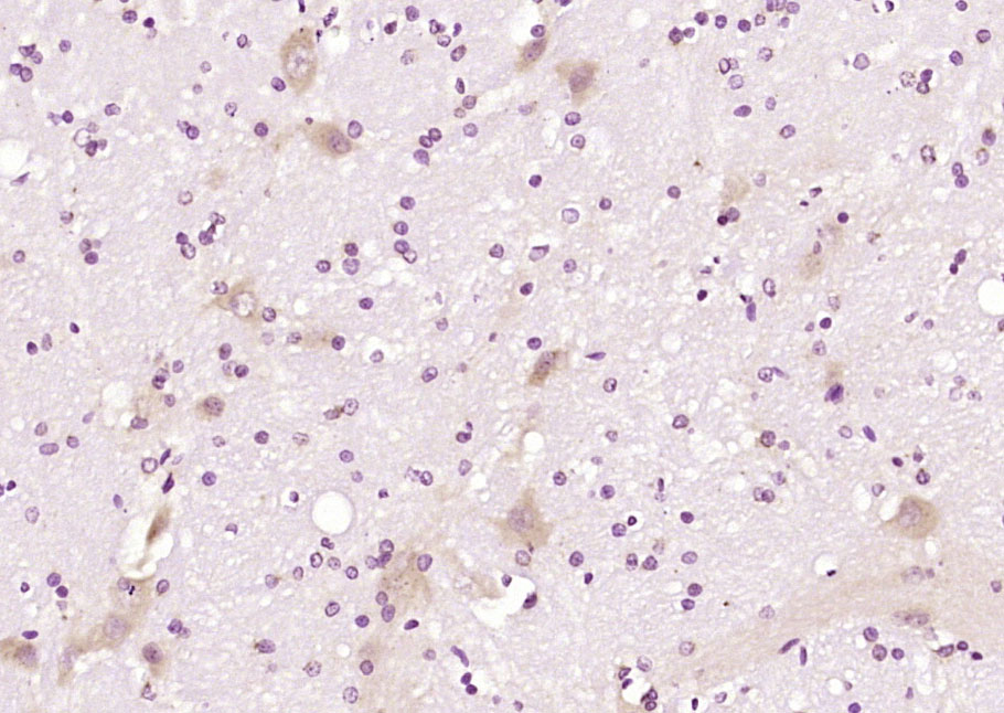 Paraformaldehyde-fixed, paraffin embedded (rat brain); Antigen retrieval by boiling in sodium citrate buffer (pH6.0) for 15min; Block endogenous peroxidase by 3% hydrogen peroxide for 20 minutes; Blocking buffer (normal goat serum) at 37°C for 30min; Antibody incubation with (DEDD1) Polyclonal Antibody, Unconjugated (bs-7062R) at 1:200 overnight at 4°C, followed by operating according to SP Kit(Rabbit) (sp-0023) instructionsand DAB staining.