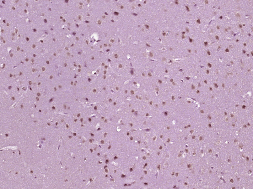 Paraformaldehyde-fixed, paraffin embedded (Mouse brain); Antigen retrieval by boiling in sodium citrate buffer (pH6.0) for 15min; Block endogenous peroxidase by 3% hydrogen peroxide for 20 minutes; Blocking buffer (normal goat serum) at 37°C for 30min; Antibody incubation with (MIER2) Polyclonal Antibody, Unconjugated (bs-6839R) at 1:400 overnight at 4°C, followed by operating according to SP Kit(Rabbit) (sp-0023) instructionsand DAB staining.