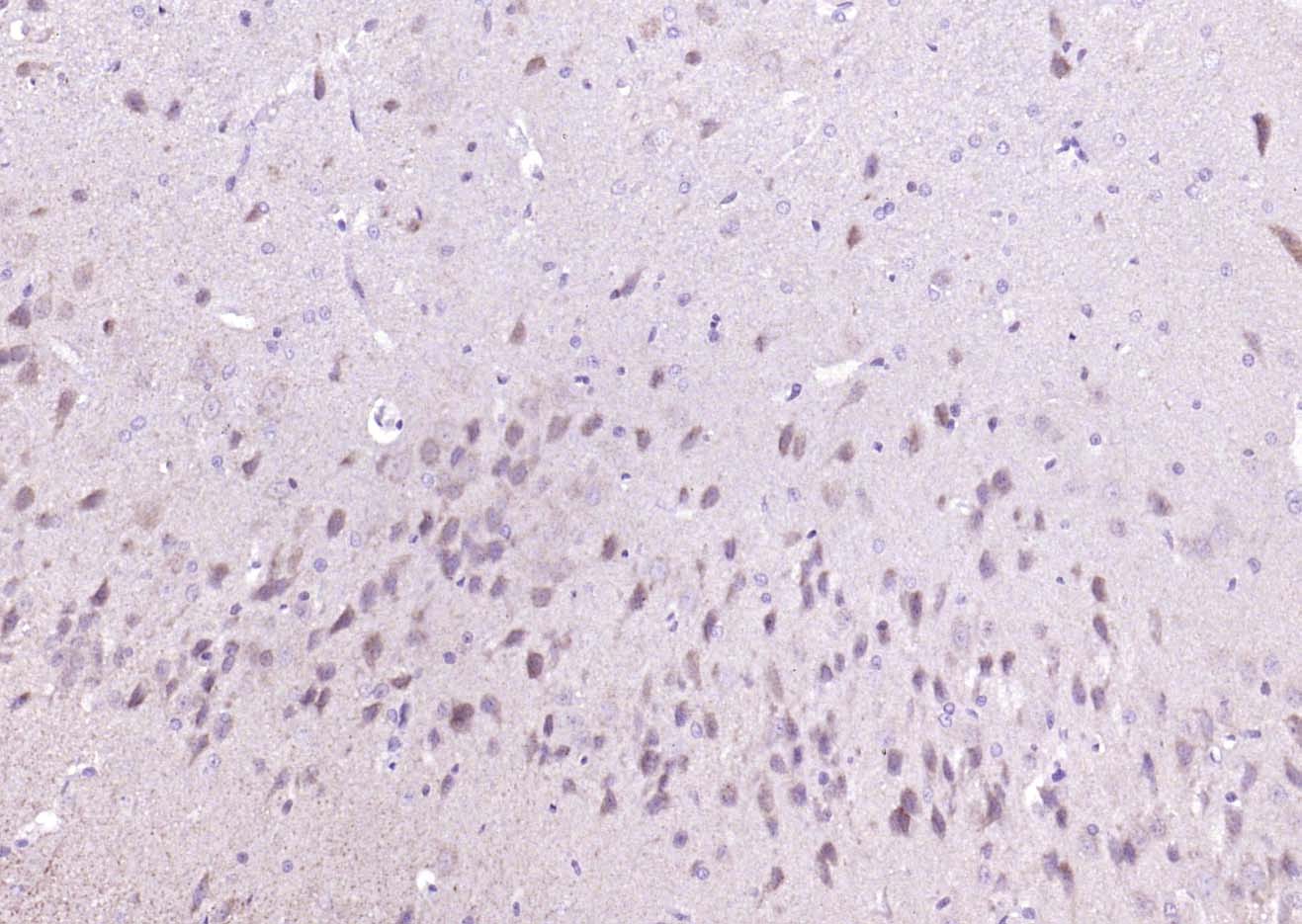 Paraformaldehyde-fixed, paraffin embedded (rat brain); Antigen retrieval by boiling in sodium citrate buffer (pH6.0) for 15min; Block endogenous peroxidase by 3% hydrogen peroxide for 20 minutes; Blocking buffer (normal goat serum) at 37°C for 30min; Antibody incubation with (Adenylosuccinate Lyase) Polyclonal Antibody, Unconjugated (bs-6352R) at 1:200 overnight at 4°C, followed by operating according to SP Kit(Rabbit) (sp-0023) instructionsand DAB staining.