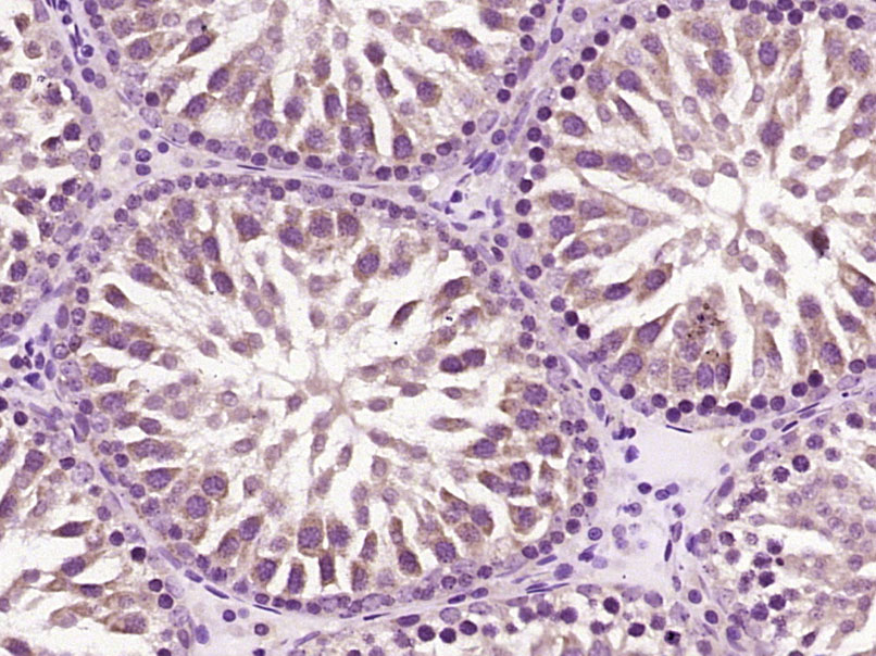 Paraformaldehyde-fixed, paraffin embedded (Rat testis); Antigen retrieval by boiling in sodium citrate buffer (pH6.0) for 15min; Block endogenous peroxidase by 3% hydrogen peroxide for 20 minutes; Blocking buffer (normal goat serum) at 37°C for 30min; Antibody incubation with (CCDC11) Polyclonal Antibody, Unconjugated (bs-7740R) at 1:400 overnight at 4°C, followed by operating according to SP Kit(Rabbit) (sp-0023) instructionsand DAB staining.