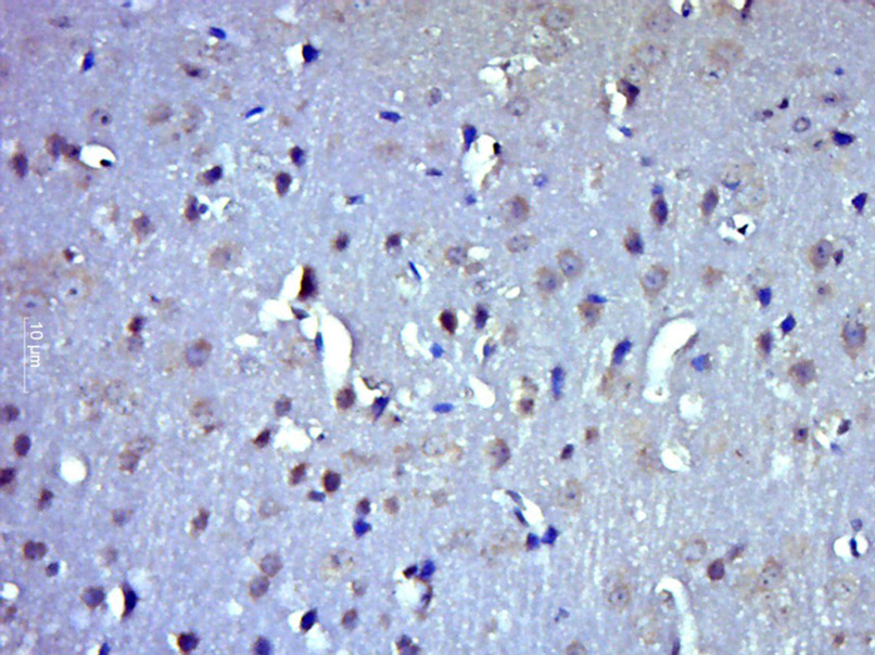 Paraformaldehyde-fixed, paraffin embedded (Mouse brain); Antigen retrieval by boiling in sodium citrate buffer (pH6.0) for 15min; Block endogenous peroxidase by 3% hydrogen peroxide for 20 minutes; Blocking buffer (normal goat serum) at 37°C for 30min; Antibody incubation with (ICMT) Polyclonal Antibody, Unconjugated (bs-8019R) at 1:400 overnight at 4°C, followed by operating according to SP Kit(Rabbit) (sp-0023) instructionsand DAB staining.