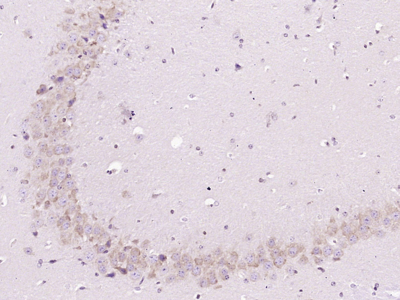 Paraformaldehyde-fixed, paraffin embedded (Mouse brain); Antigen retrieval by boiling in sodium citrate buffer (pH6.0) for 15min; Block endogenous peroxidase by 3% hydrogen peroxide for 20 minutes; Blocking buffer (normal goat serum) at 37°C for 30min; Antibody incubation with (CCDC61) Polyclonal Antibody, Unconjugated (bs-8136R) at 1:400 overnight at 4°C, followed by operating according to SP Kit(Rabbit) (sp-0023) instructionsand DAB staining.