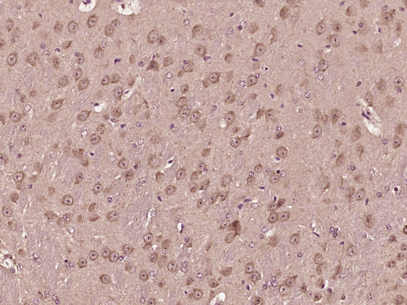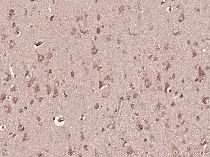 Paraformaldehyde-fixed, paraffin embedded (rat brain); Antigen retrieval by boiling in sodium citrate buffer (pH6.0) for 15min; Block endogenous peroxidase by 3% hydrogen peroxide for 20 minutes; Blocking buffer (normal goat serum) at 37°C for 30min; Antibody incubation with (CCDC92) Polyclonal Antibody, Unconjugated (bs-8142R) at 1:200 overnight at 4°C, followed by operating according to SP Kit(Rabbit) (sp-0023) instructionsand DAB staining.