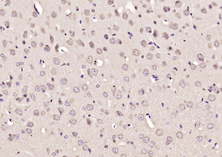Paraformaldehyde-fixed, paraffin embedded (mouse brain); Antigen retrieval by boiling in sodium citrate buffer (pH6.0) for 15min; Block endogenous peroxidase by 3% hydrogen peroxide for 20 minutes; Blocking buffer (normal goat serum) at 37°C for 30min; Antibody incubation with (COMMD10) Polyclonal Antibody, Unconjugated (bs-8181R) at 1:200 overnight at 4°C, followed by operating according to SP Kit(Rabbit) (sp-0023) instructionsand DAB staining.