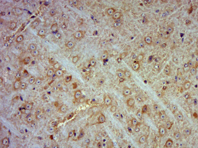Paraformaldehyde-fixed, paraffin embedded (Mouse brain); Antigen retrieval by boiling in sodium citrate buffer (pH6.0) for 15min; Block endogenous peroxidase by 3% hydrogen peroxide for 20 minutes; Blocking buffer (normal goat serum) at 37°C for 30min; Antibody incubation with (CUTA) Polyclonal Antibody, Unconjugated (bs-8248R) at 1:400 overnight at 4°C, followed by operating according to SP Kit(Rabbit) (sp-0023) instructionsand DAB staining.