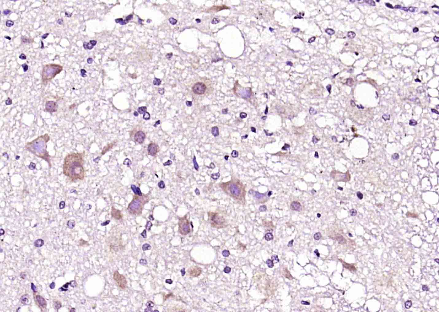 Paraformaldehyde-fixed, paraffin embedded (rat brain); Antigen retrieval by boiling in sodium citrate buffer (pH6.0) for 15min; Block endogenous peroxidase by 3% hydrogen peroxide for 20 minutes; Blocking buffer (normal goat serum) at 37°C for 30min; Antibody incubation with (LRRC59) Polyclonal Antibody, Unconjugated (bs-8361R) at 1:200 overnight at 4°C, followed by operating according to SP Kit(Rabbit) (sp-0023) instructionsand DAB staining.