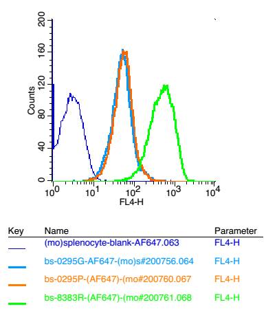 The cells were fixed with 4% PFA (10min at room temperature)and then permeabilized with 90% ice-cold methanol for 20 min at-20℃. The cells were then incubated in 5%BSA to block non-specific protein-protein interactions for 30 min at room temperature .Cells stained with Primary Antibody for 30 min at room temperature. The secondary antibody used for 40 min at room temperature. Acquisition of 20,000 events was performed.
