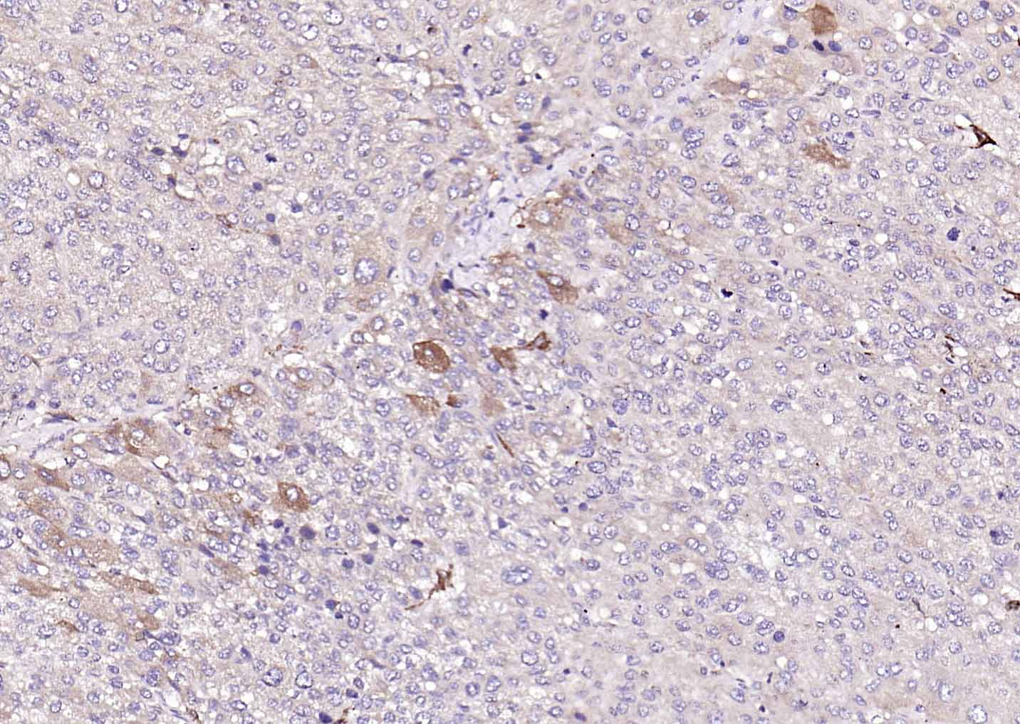 Paraformaldehyde-fixed, paraffin embedded (human liver carcinoma); Antigen retrieval by boiling in sodium citrate buffer (pH6.0) for 15min; Block endogenous peroxidase by 3% hydrogen peroxide for 20 minutes; Blocking buffer (normal goat serum) at 37°C for 30min; Antibody incubation with (HHLA2) Polyclonal Antibody, Unconjugated (bs-8419R) at 1:200 overnight at 4°C, followed by operating according to SP Kit(Rabbit) (sp-0023) instructionsand DAB staining.