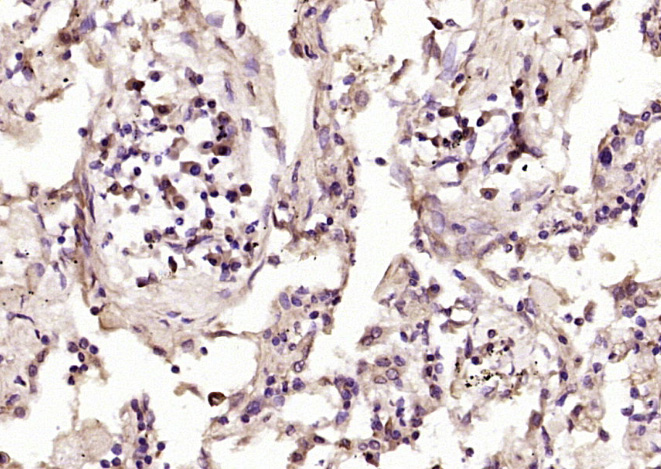 Paraformaldehyde-fixed, paraffin embedded (human lung carcinoma); Antigen retrieval by boiling in sodium citrate buffer (pH6.0) for 15min; Block endogenous peroxidase by 3% hydrogen peroxide for 20 minutes; Blocking buffer (normal goat serum) at 37°C for 30min; Antibody incubation with (NCF1) Polyclonal Antibody, Unconjugated (bs-6966R) at 1:200 overnight at 4°C, followed by operating according to SP Kit(Rabbit) (sp-0023) instructionsand DAB staining.