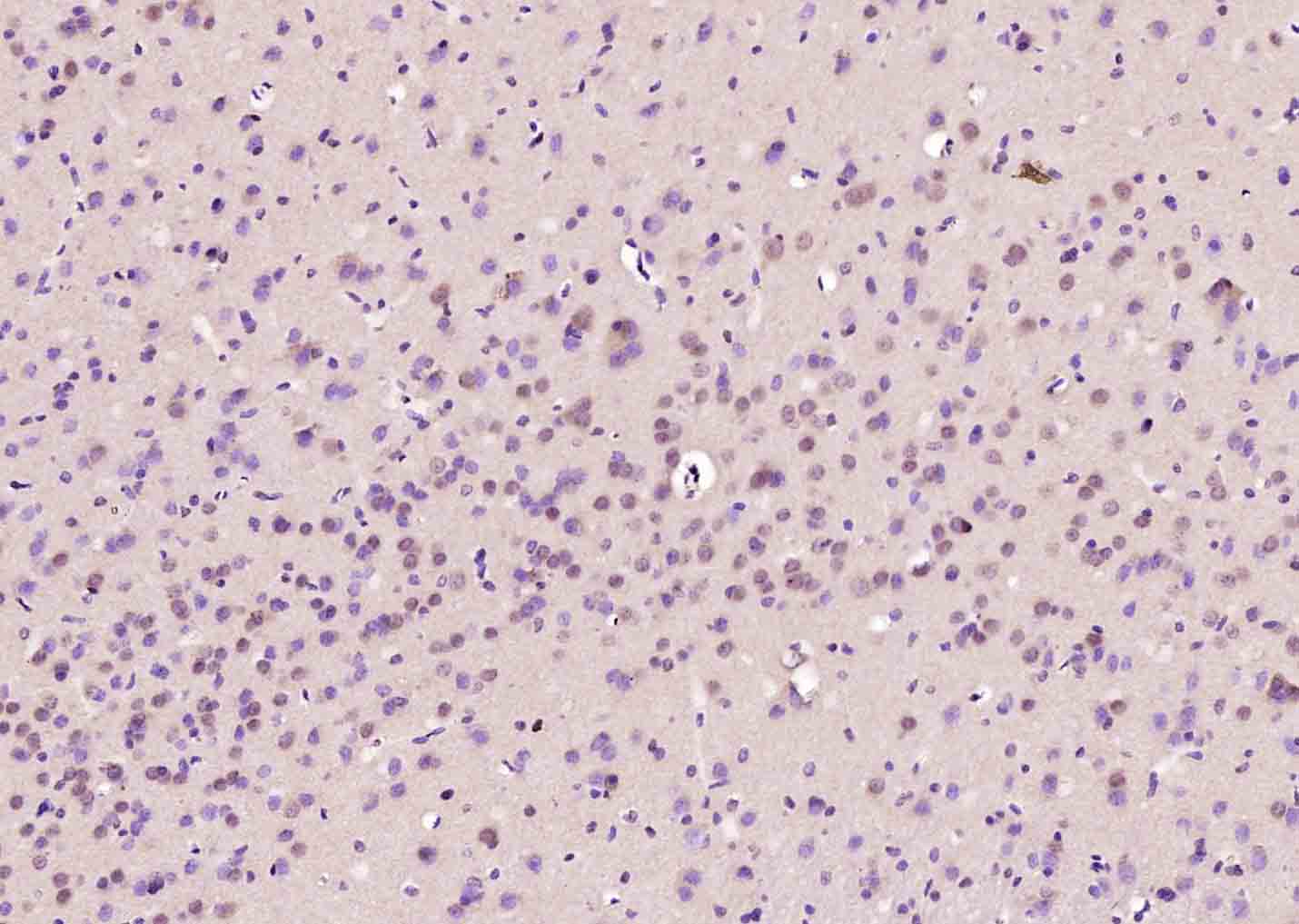 Paraformaldehyde-fixed, paraffin embedded (rat brain); Antigen retrieval by boiling in sodium citrate buffer (pH6.0) for 15min; Block endogenous peroxidase by 3% hydrogen peroxide for 20 minutes; Blocking buffer (normal goat serum) at 37°C for 30min; Antibody incubation with (AKIRIN1) Polyclonal Antibody, Unconjugated (bs-9081R) at 1:200 overnight at 4°C, followed by operating according to SP Kit(Rabbit) (sp-0023) instructionsand DAB staining.