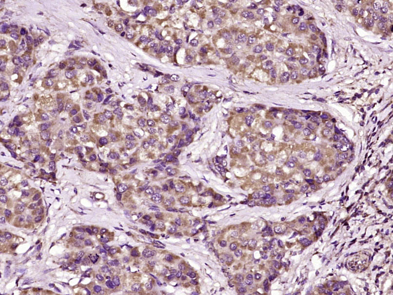 Paraformaldehyde-fixed, paraffin embedded (Human liver carcinoma); Antigen retrieval by boiling in sodium citrate buffer (pH6.0) for 15min; Block endogenous peroxidase by 3% hydrogen peroxide for 20 minutes; Blocking buffer (normal goat serum) at 37°C for 30min; Antibody incubation with (FBXO21) Polyclonal Antibody, Unconjugated (bs-9121R) at 1:400 overnight at 4°C, followed by operating according to SP Kit(Rabbit) (sp-0023) instructionsand DAB staining.