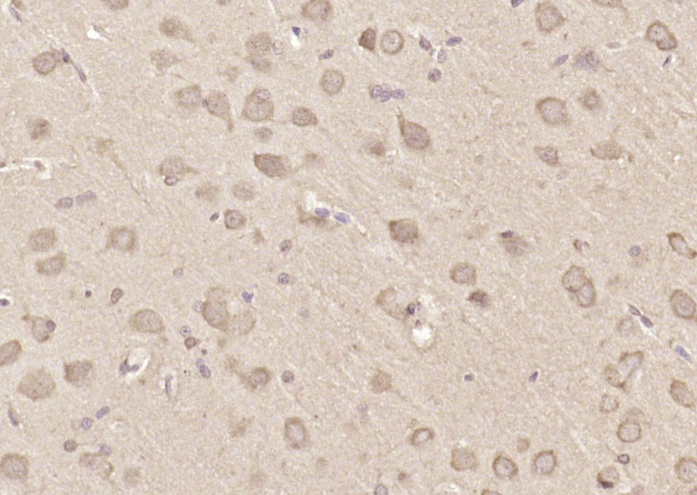 Paraformaldehyde-fixed, paraffin embedded (rat brain); Antigen retrieval by boiling in sodium citrate buffer (pH6.0) for 15min; Block endogenous peroxidase by 3% hydrogen peroxide for 20 minutes; Blocking buffer (normal goat serum) at 37°C for 30min; Antibody incubation with (FAM96B) Polyclonal Antibody, Unconjugated (bs-9729R) at 1:200 overnight at 4°C, followed by operating according to SP Kit(Rabbit) (sp-0023) instructionsand DAB staining.