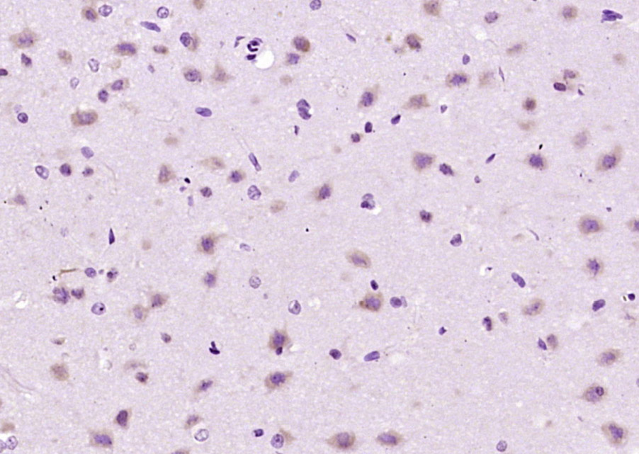 Paraformaldehyde-fixed, paraffin embedded (mouse brain); Antigen retrieval by boiling in sodium citrate buffer (pH6.0) for 15min; Block endogenous peroxidase by 3% hydrogen peroxide for 20 minutes; Blocking buffer (normal goat serum) at 37°C for 30min; Antibody incubation with (C2orf43) Polyclonal Antibody, Unconjugated (bs-9816R) at 1:200 overnight at 4°C, followed by operating according to SP Kit(Rabbit) (sp-0023) instructionsand DAB staining.