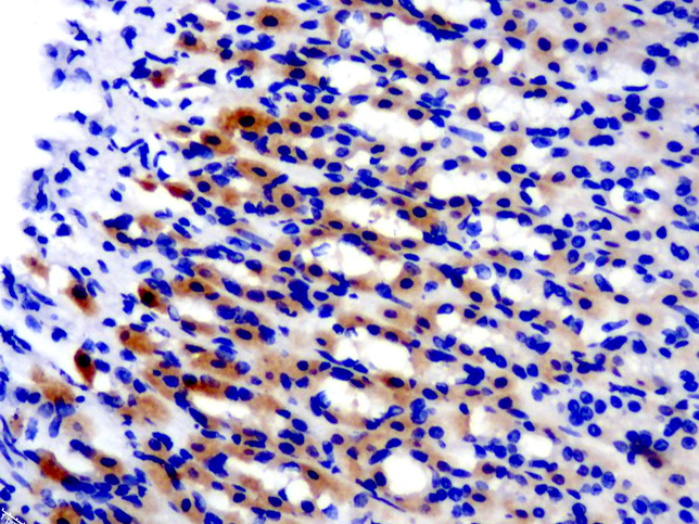 Paraformaldehyde-fixed, paraffin embedded (rat stomach); Antigen retrieval by boiling in sodium citrate buffer (pH6.0) for 15min; Block endogenous peroxidase by 3% hydrogen peroxide for 20 minutes; Blocking buffer (normal goat serum) at 37°C for 30min; Antibody incubation with (KIAA1211L) Polyclonal Antibody, Unconjugated (bs-9817R) at 1:500 overnight at 4°C, followed by a conjugated secondary (sp-0023) for 20 minutes and DAB staining.