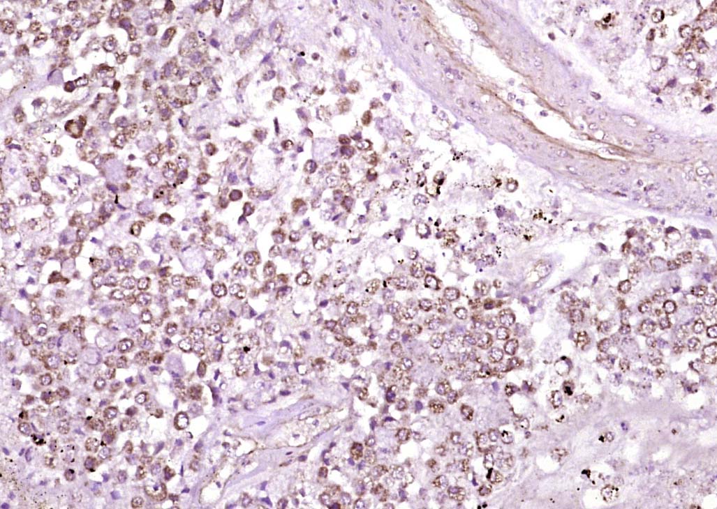 Paraformaldehyde-fixed, paraffin embedded (Human cervical carcinoma); Antigen retrieval by boiling in sodium citrate buffer (pH6.0) for 15min; Block endogenous peroxidase by 3% hydrogen peroxide for 20 minutes; Blocking buffer (normal goat serum) at 37°C for 30min; Antibody incubation with (GDN) Polyclonal Antibody, Unconjugated (bs-9845R) at 1:400 overnight at 4°C, followed by operating according to SP Kit(Rabbit) (sp-0023) instructionsand DAB staining.