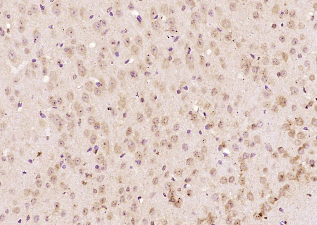 Paraformaldehyde-fixed, paraffin embedded (mouse brain); Antigen retrieval by boiling in sodium citrate buffer (pH6.0) for 15min; Block endogenous peroxidase by 3% hydrogen peroxide for 20 minutes; Blocking buffer (normal goat serum) at 37°C for 30min; Antibody incubation with (BBS5) Polyclonal Antibody, Unconjugated (bs-9438R) at 1:400 overnight at 4°C, followed by operating according to SP Kit(Rabbit) (sp-0023) instructionsand DAB staining.