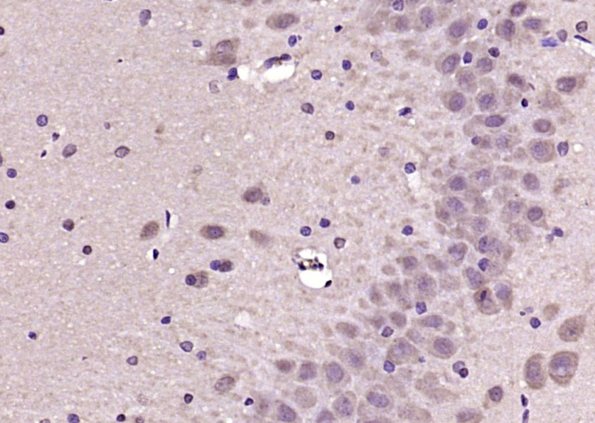 Paraformaldehyde-fixed, paraffin embedded (rat brain); Antigen retrieval by boiling in sodium citrate buffer (pH6.0) for 15min; Block endogenous peroxidase by 3% hydrogen peroxide for 20 minutes; Blocking buffer (normal goat serum) at 37°C for 30min; Antibody incubation with (CREG2) Polyclonal Antibody, Unconjugated (bs-9957R) at 1:200 overnight at 4°C, followed by operating according to SP Kit(Rabbit) (sp-0023) instructionsand DAB staining.