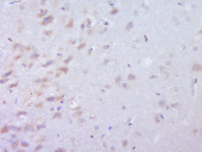 Paraformaldehyde-fixed, paraffin embedded (Rat brain); Antigen retrieval by boiling in sodium citrate buffer (pH6.0) for 15min; Block endogenous peroxidase by 3% hydrogen peroxide for 20 minutes; Blocking buffer (normal goat serum) at 37°C for 30min; Antibody incubation with (C22orf25) Polyclonal Antibody, Unconjugated (bs-9984R) at 1:400 overnight at 4°C, followed by operating according to SP Kit(Rabbit) (sp-0023) instructions and DAB staining.