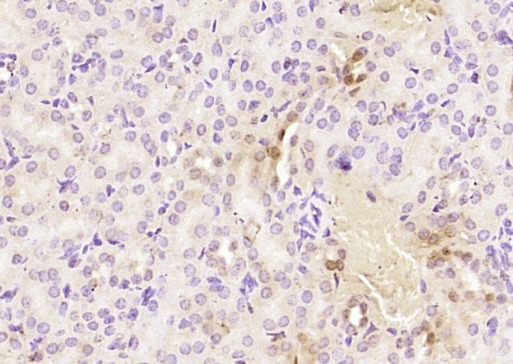 Paraformaldehyde-fixed, paraffin embedded (mouse kidney); Antigen retrieval by boiling in sodium citrate buffer (pH6.0) for 15min; Block endogenous peroxidase by 3% hydrogen peroxide for 20 minutes; Blocking buffer (normal goat serum) at 37°C for 30min; Antibody incubation with (C7orf27) Polyclonal Antibody, Unconjugated (bs-9542R) at 1:400 overnight at 4°C, followed by operating according to SP Kit(Rabbit) (sp-0023) instructionsand DAB staining.