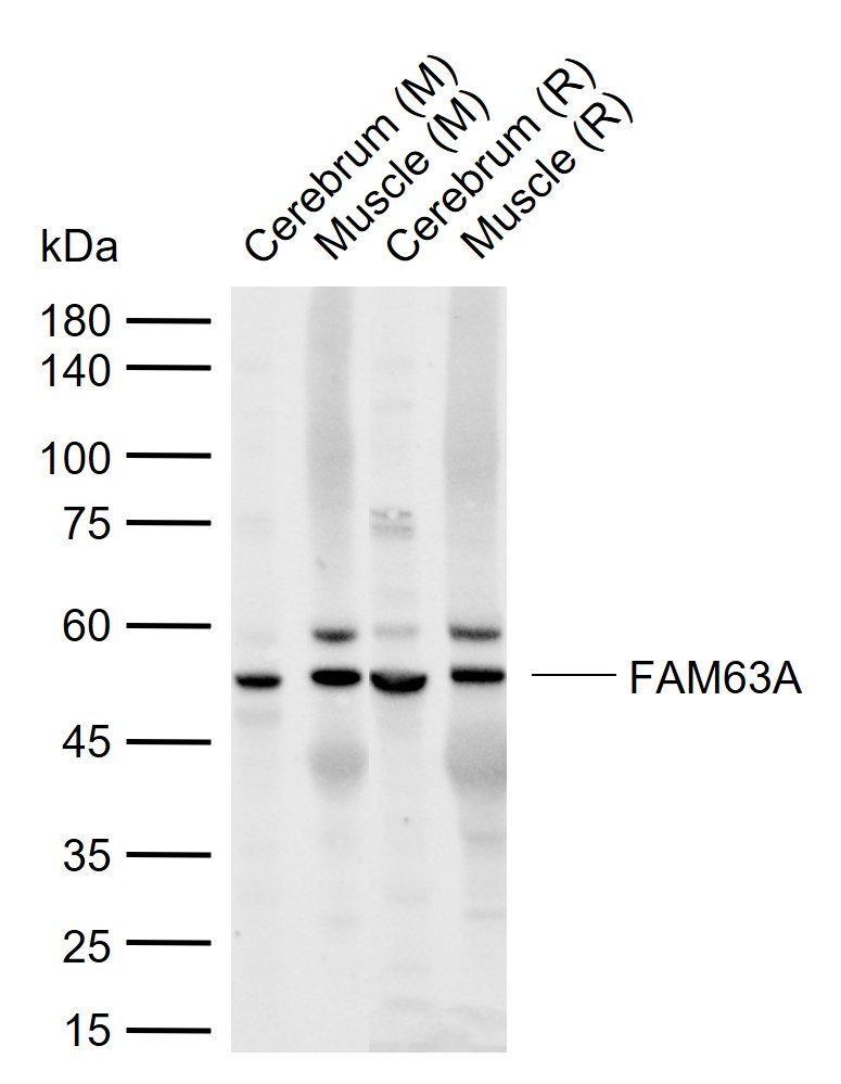 Primary: Anti-FAM63A (bs-11004R) at 1/1000 dilution