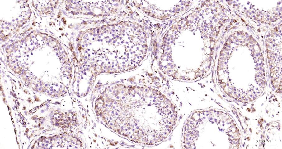 Paraformaldehyde-fixed, paraffin embedded Human Testicles; Antigen retrieval by boiling in sodium citrate buffer (pH6.0) for 15 min; The section was incubated with Osteocalcin Polyclonal Antibody, Unconjugated (bs-4917R) at 1:200 overnight at 4°C, followed by conjugation to the bs-0295G-HRP and DAB (C-0010) staining.
