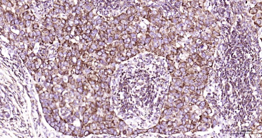 Paraformaldehyde-fixed, paraffin embedded Human Breast Cancer; Antigen retrieval by boiling in sodium citrate buffer (pH6.0) for 15 min; The section was incubated with Osteocalcin Polyclonal Antibody, Unconjugated (bs-4917R) at 1:200 overnight at 4°C, followed by conjugation to the bs-0295G-HRP and DAB (C-0010) staining.