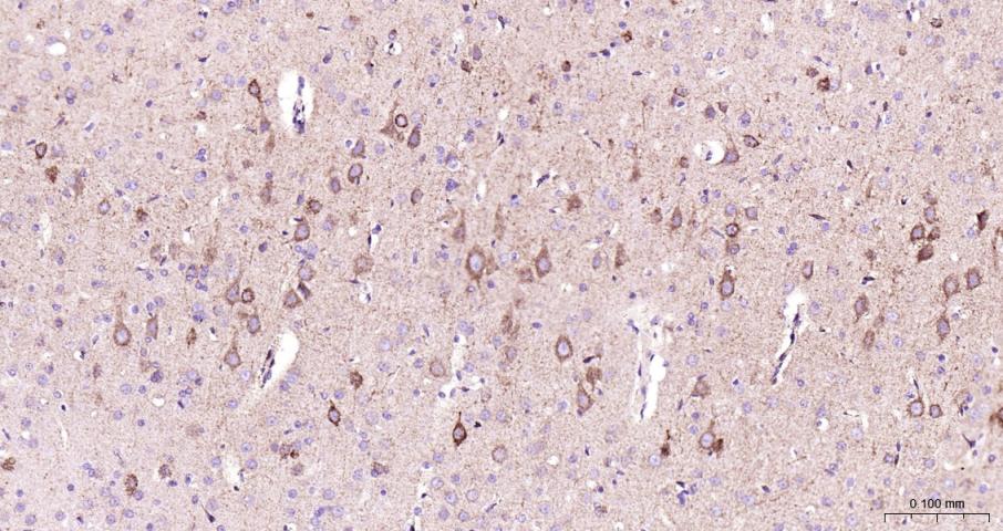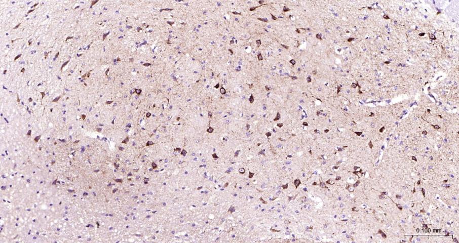 Paraformaldehyde-fixed, paraffin embedded Rat Cerebrum; Antigen retrieval by boiling in sodium citrate buffer (pH6.0) for 15 min; The section was incubated with Osteocalcin Polyclonal Antibody, Unconjugated (bs-4917R) at 1:200 overnight at 4°C, followed by conjugation to the bs-0295G-HRP and DAB (C-0010) staining.