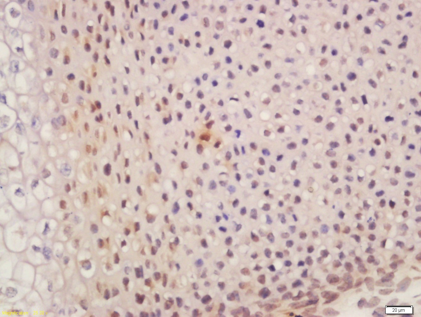 Antigen retrieval: citrate buffer ( 0.01M, pH 6.0 ), Boiling bathing for 15min; Block endogenous peroxidase by 3% Hydrogen peroxide for 30min; Blocking buffer (normal goat serum,C-0005) at 37℃ for 20 min;