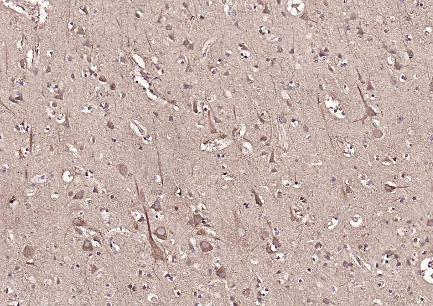 Paraformaldehyde-fixed, paraffin embedded (human brain); Antigen retrieval by boiling in sodium citrate buffer (pH6.0) for 15min; Block endogenous peroxidase by 3% hydrogen peroxide for 20 minutes; Blocking buffer (normal goat serum) at 37°C for 30min; Incubation with (Monoamine Oxidase B) Polyclonal Antibody, Unconjugated (bs-11297R) at 1:200 overnight at 4°C, followed by operating according to SP Kit(Rabbit) (sp-0023) instructionsand DAB staining.