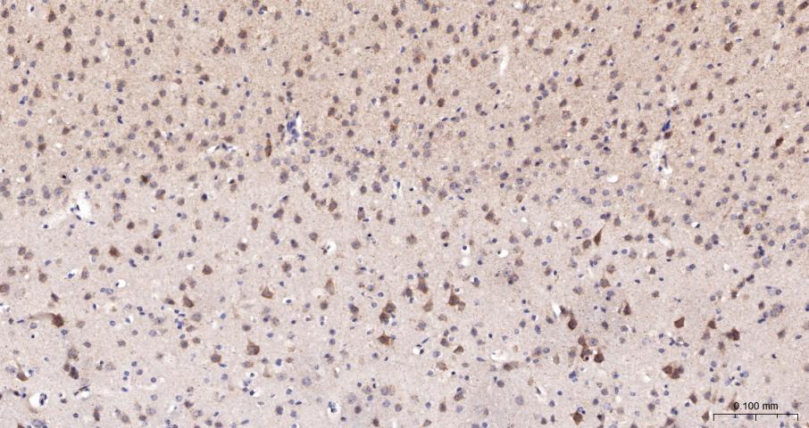 Paraformaldehyde-fixed, paraffin embedded Rat Cerebrum; Antigen retrieval by boiling in sodium citrate buffer (pH6.0) for 15 min; The section was incubated with Monoamine Oxidase B Polyclonal Antibody, Unconjugated (bs-11297R) at 1:200 overnight at 4°C, followed by conjugation to the bs-0295G-HRP and DAB (C-0010) staining.