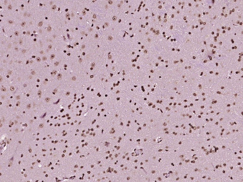 Paraformaldehyde-fixed, paraffin embedded (Rat brain); Antigen retrieval by boiling in sodium citrate buffer (pH6.0) for 15min; Block endogenous peroxidase by 3% hydrogen peroxide for 20 minutes; Blocking buffer (normal goat serum) at 37°C for 30min; Antibody incubation with (C1orf53) Polyclonal Antibody, Unconjugated (bs-15069R) at 1:400 overnight at 4°C, followed by operating according to SP Kit(Rabbit) (sp-0023) instructionsand DAB staining.