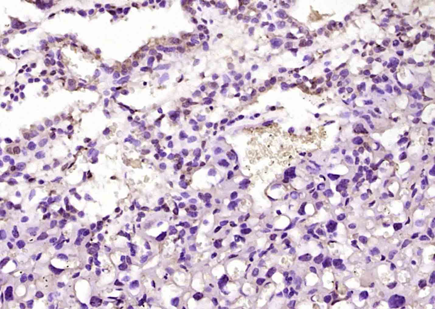 Paraformaldehyde-fixed, paraffin embedded (mouse placenta); Antigen retrieval by boiling in sodium citrate buffer (pH6.0) for 15min; Block endogenous peroxidase by 3% hydrogen peroxide for 20 minutes; Blocking buffer (normal goat serum) at 37°C for 30min; Antibody incubation with (C2orf72) Polyclonal Antibody, Unconjugated (bs-15159R) at 1:200 overnight at 4°C, followed by operating according to SP Kit(Rabbit) (sp-0023) instructionsand DAB staining.