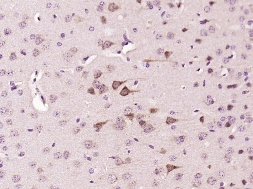 Paraformaldehyde-fixed, paraffin embedded (Rat brain); Antigen retrieval by boiling in sodium citrate buffer (pH6.0) for 15min; Block endogenous peroxidase by 3% hydrogen peroxide for 20 minutes; Blocking buffer (normal goat serum) at 37°C for 30min; Antibody incubation with (FSD1) Polyclonal Antibody, Unconjugated (bs-13220R) at 1:400 overnight at 4°C, followed by operating according to SP Kit(Rabbit) (sp-0023) instructionsand DAB staining.
