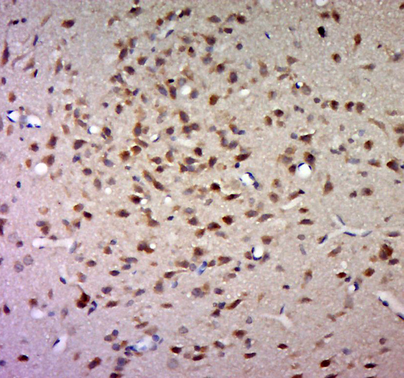 Paraformaldehyde-fixed, paraffin embedded (Rat brain); Antigen retrieval by boiling in sodium citrate buffer (pH6.0) for 15min; Block endogenous peroxidase by 3% hydrogen peroxide for 20 minutes; Blocking buffer (normal goat serum) at 37°C for 30min; Antibody incubation with (GLT1D1) Polyclonal Antibody, Unconjugated (bs-13377R) at 1:500 overnight at 4°C, followed by a conjugated secondary (sp-0023) for 20 minutes and DAB staining.