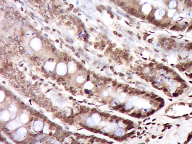 Paraformaldehyde-fixed, paraffin embedded (Rat small intestine); Antigen retrieval by boiling in sodium citrate buffer (pH6.0) for 15min; Block endogenous peroxidase by 3% hydrogen peroxide for 20 minutes; Blocking buffer (normal goat serum) at 37°C for 30min; Antibody incubation with (C9orf6) Polyclonal Antibody, Unconjugated (bs-15333R) at 1:400 overnight at 4°C, followed by operating according to SP Kit(Rabbit) (sp-0023) instructions and DAB staining.