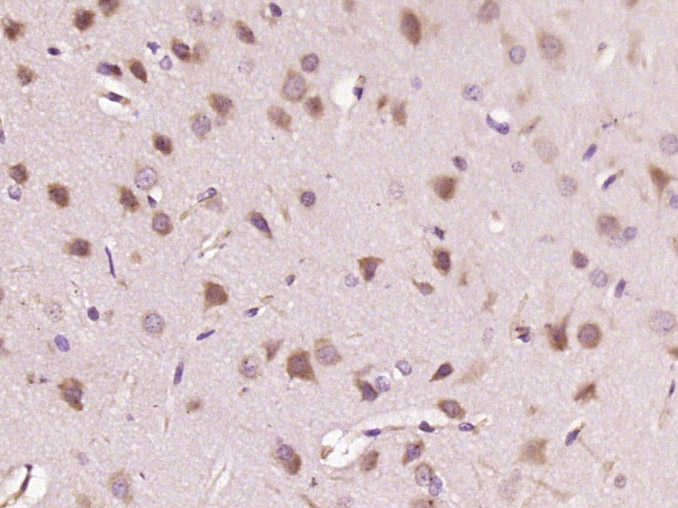 Paraformaldehyde-fixed, paraffin embedded (rat brain tissue); Antigen retrieval by boiling in sodium citrate buffer (pH6.0) for 15min; Block endogenous peroxidase by 3% hydrogen peroxide for 20 minutes; Blocking buffer (normal goat serum) at 37°C for 30min; Antibody incubation with (HDPTP) Polyclonal Antibody, Unconjugated (bs-15434R) at 1:400 overnight at 4°C, followed by operating according to SP Kit(Rabbit) (sp-0023) instructionsand DAB staining.