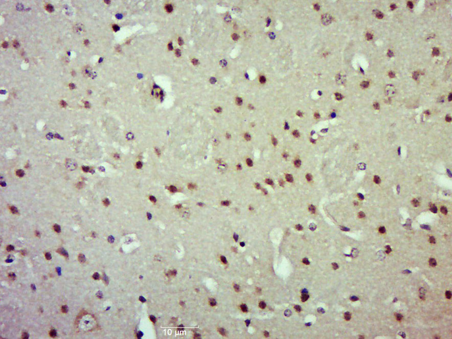 Paraformaldehyde-fixed, paraffin embedded (Mouse brain); Antigen retrieval by boiling in sodium citrate buffer (pH6.0) for 15min; Block endogenous peroxidase by 3% hydrogen peroxide for 20 minutes; Blocking buffer (normal goat serum) at 37°C for 30min; Antibody incubation with (EIF1AY) Polyclonal Antibody, Unconjugated (bs-4314R ) at 1:500 overnight at 4°C, followed by a conjugated secondary (sp-0023) for 20 minutes and DAB staining.