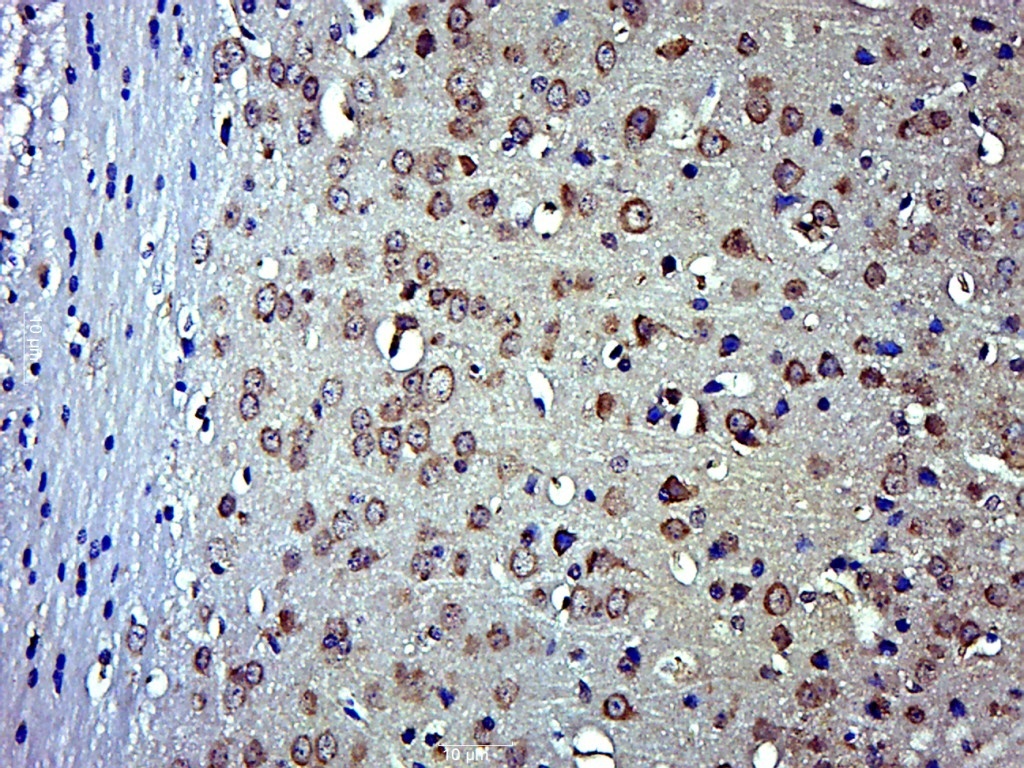 Paraformaldehyde-fixed, paraffin embedded (Mouse brain); Antigen retrieval by boiling in sodium citrate buffer (pH6.0) for 15min; Block endogenous peroxidase by 3% hydrogen peroxide for 20 minutes; Blocking buffer (normal goat serum) at 37°C for 30min; Antibody incubation with (EFR3B) Polyclonal Antibody, Unconjugated (bs-14521R) at 1:500 overnight at 4°C, followed by a conjugated secondary (sp-0023) for 20 minutes and DAB staining.
