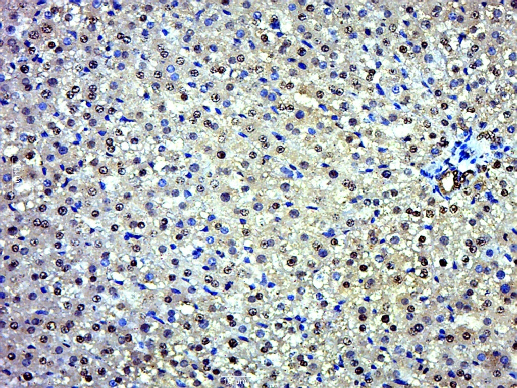 Paraformaldehyde-fixed, paraffin embedded (Rat liver); Antigen retrieval by boiling in sodium citrate buffer (pH6.0) for 15min; Block endogenous peroxidase by 3% hydrogen peroxide for 20 minutes; Blocking buffer (normal goat serum) at 37°C for 30min; Antibody incubation with (EXD2) Polyclonal Antibody, Unconjugated (bs-14654R) at 1:500 overnight at 4°C, followed by a conjugated secondary (sp-0023) for 20 minutes and DAB staining.