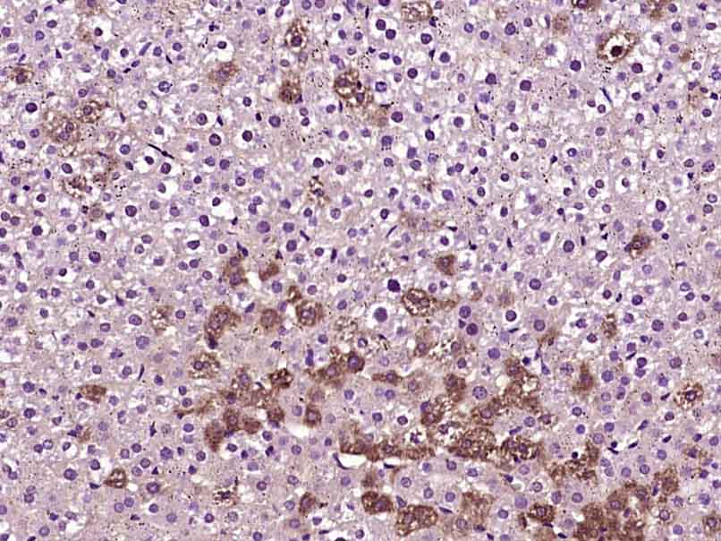 Paraformaldehyde-fixed, paraffin embedded (Rat liver); Antigen retrieval by boiling in sodium citrate buffer (pH6.0) for 15min; Block endogenous peroxidase by 3% hydrogen peroxide for 20 minutes; Blocking buffer (normal goat serum) at 37°C for 30min; Antibody incubation with (FLJ20259) Polyclonal Antibody, Unconjugated (bs-16109R) at 1:400 overnight at 4°C, followed by operating according to SP Kit(Rabbit) (sp-0023) instructionsand DAB staining.
