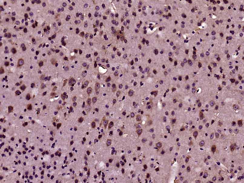 Paraformaldehyde-fixed, paraffin embedded (Mouse brain); Antigen retrieval by boiling in sodium citrate buffer (pH6.0) for 15min; Block endogenous peroxidase by 3% hydrogen peroxide for 20 minutes; Blocking buffer (normal goat serum) at 37°C for 30min; Antibody incubation with (GTL3) Polyclonal Antibody, Unconjugated (bs-16363R) at 1:400 overnight at 4°C, followed by operating according to SP Kit(Rabbit) (sp-0023) instructionsand DAB staining.