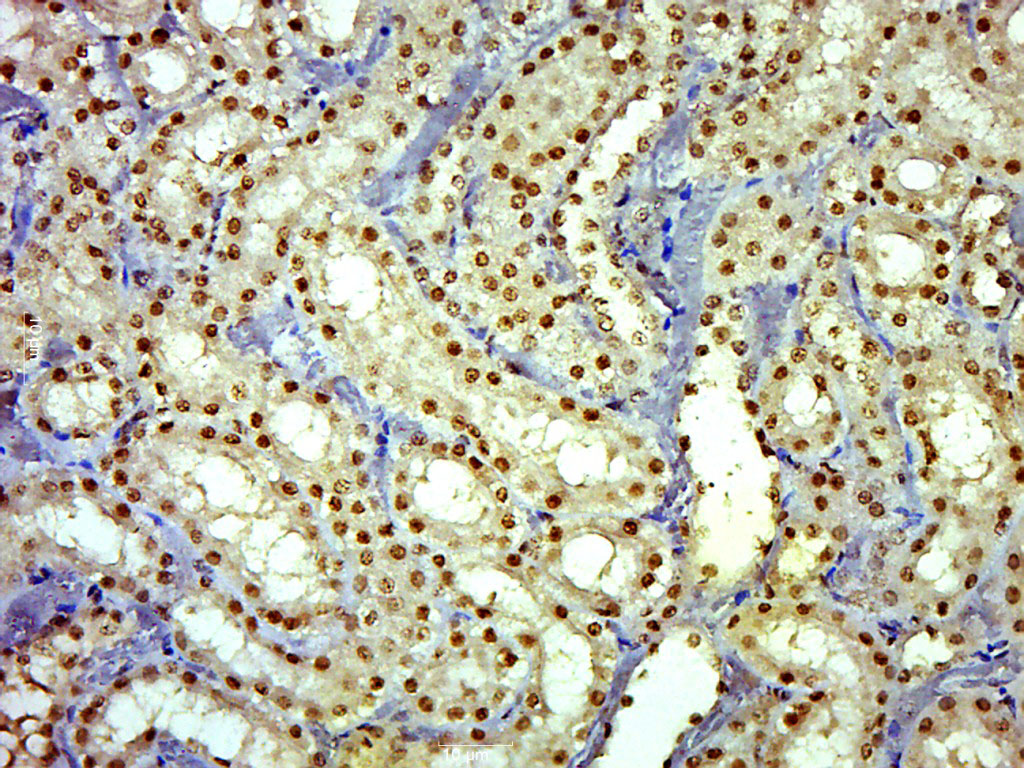 Paraformaldehyde-fixed, paraffin embedded (Rat kidney); Antigen retrieval by boiling in sodium citrate buffer (pH6.0) for 15min; Block endogenous peroxidase by 3% hydrogen peroxide for 20 minutes; Blocking buffer (normal goat serum) at 37°C for 30min; Antibody incubation with (ZSWIM4) Polyclonal Antibody, Unconjugated (bs-16396R) at 1:500 overnight at 4°C, followed by a conjugated secondary (sp-0023) for 20 minutes and DAB staining.
