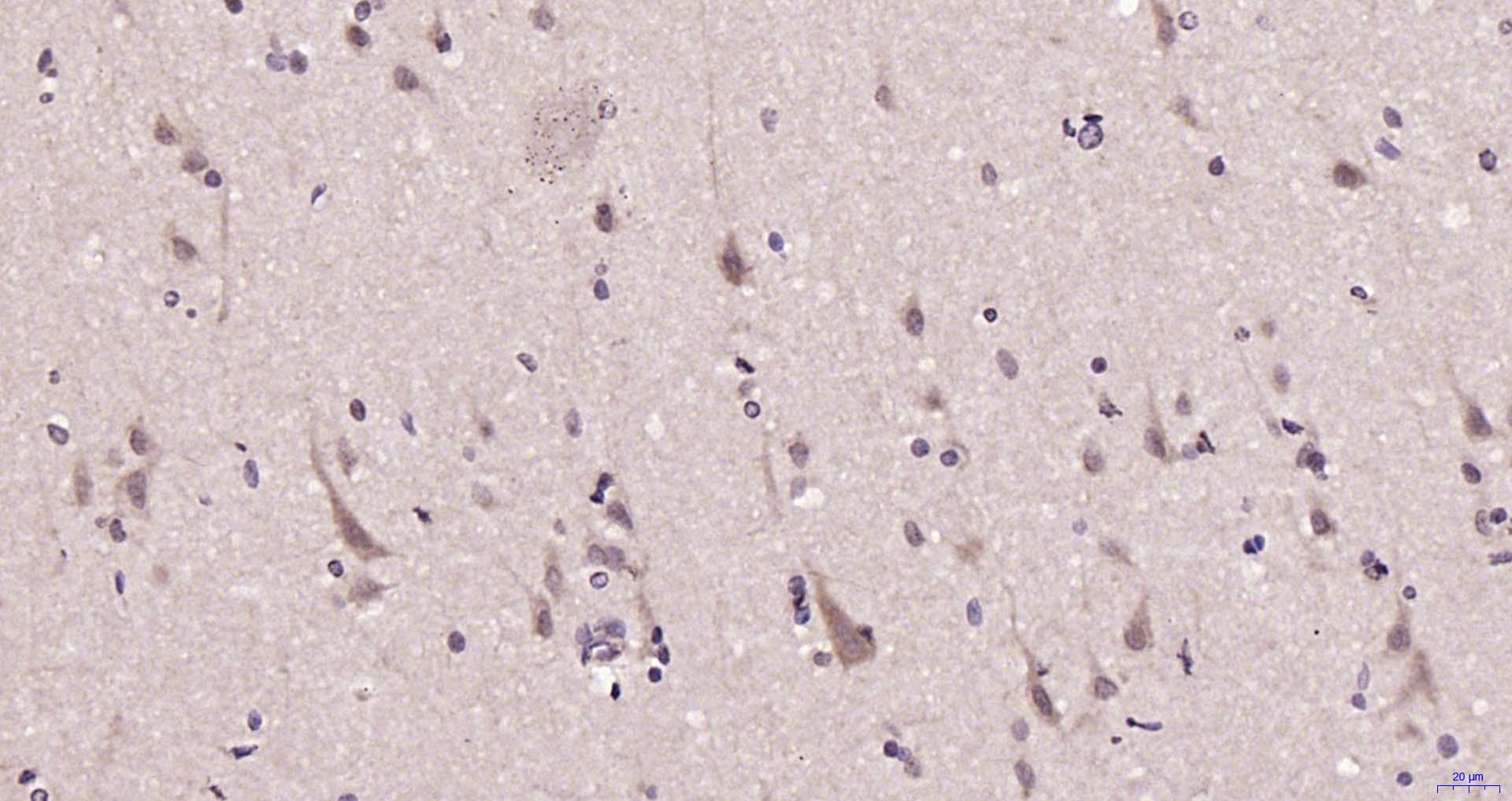 Paraformaldehyde-fixed, paraffin embedded Rat Cerebrum; Antigen retrieval by boiling in sodium citrate buffer (pH6.0) for 15 min; Antibody incubation with KMT3C Polyclonal Antibody, Unconjugated (bs-16796R) at 1:200 overnight at 4°C, followed by conjugation to the SP Kit (Rabbit, SP-0023) and DAB (C-0010) staining.