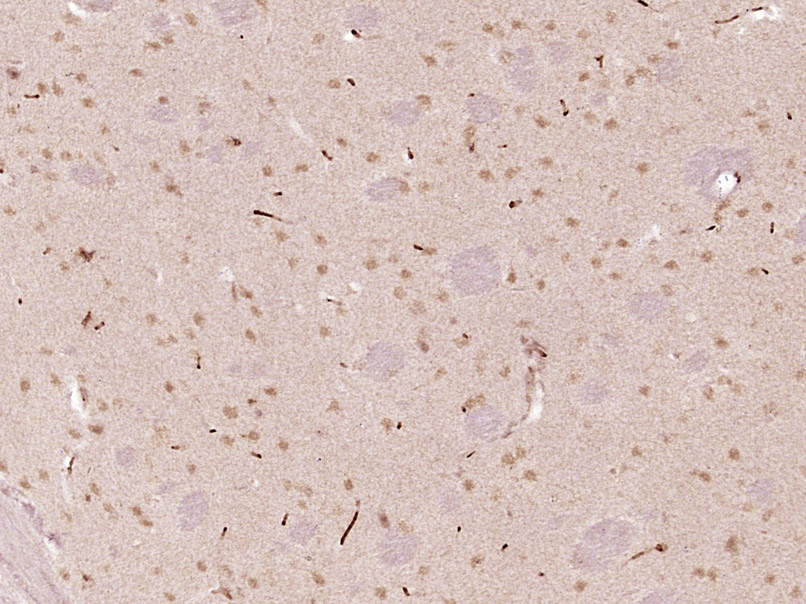 Paraformaldehyde-fixed, paraffin embedded (Rat brain); Antigen retrieval by boiling in sodium citrate buffer (pH6.0) for 15min; Block endogenous peroxidase by 3% hydrogen peroxide for 20 minutes; Blocking buffer (normal goat serum) at 37°C for 30min; Antibody incubation with (KIAA1755) Polyclonal Antibody, Unconjugated (bs-17029R) at 1:400 overnight at 4°C, followed by operating according to SP Kit(Rabbit) (sp-0023) instructionsand DAB staining.