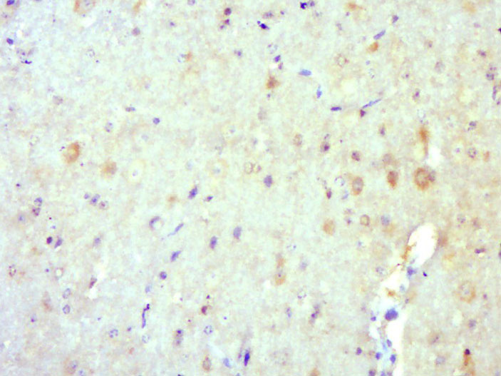Paraformaldehyde-fixed, paraffin embedded (Mouse brain); Antigen retrieval by boiling in sodium citrate buffer (pH6.0) for 15min; Block endogenous peroxidase by 3% hydrogen peroxide for 20 minutes; Blocking buffer (normal goat serum) at 37°C for 30min; Antibody incubation with (TRIM62) Polyclonal Antibody, Unconjugated (bs-17118R) at 1:500 overnight at 4°C, followed by a conjugated secondary (sp-0023) for 20 minutes and DAB staining.
